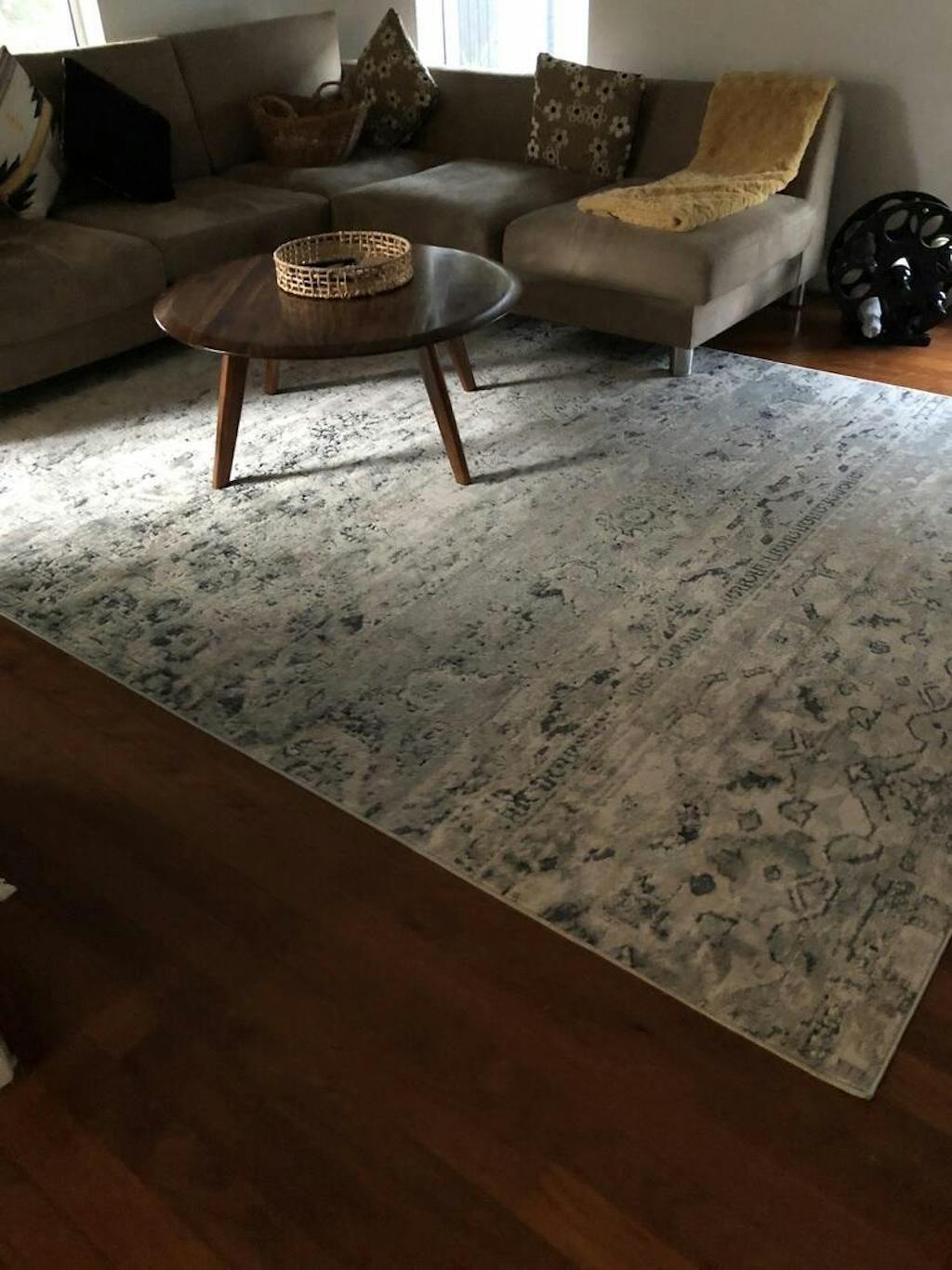 This rug has an oxidisation manufacturing method, which means that the design of the pile has been manufactured to have parts of the rug's pile exhibit a sunken pile effect that adds to the uniqueness of this rug.