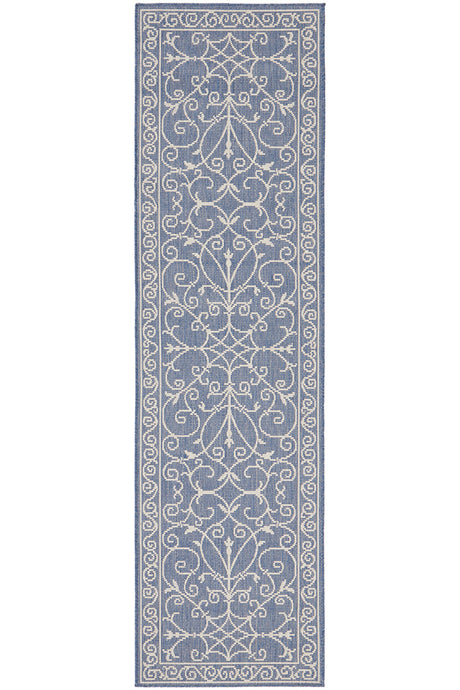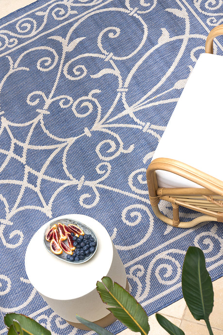 Promenade Outdoor Fern Trellis Blue Rug