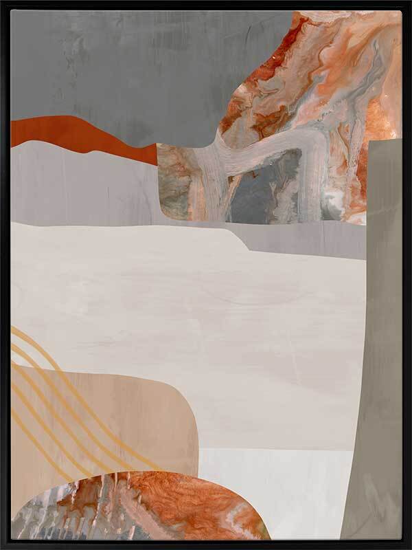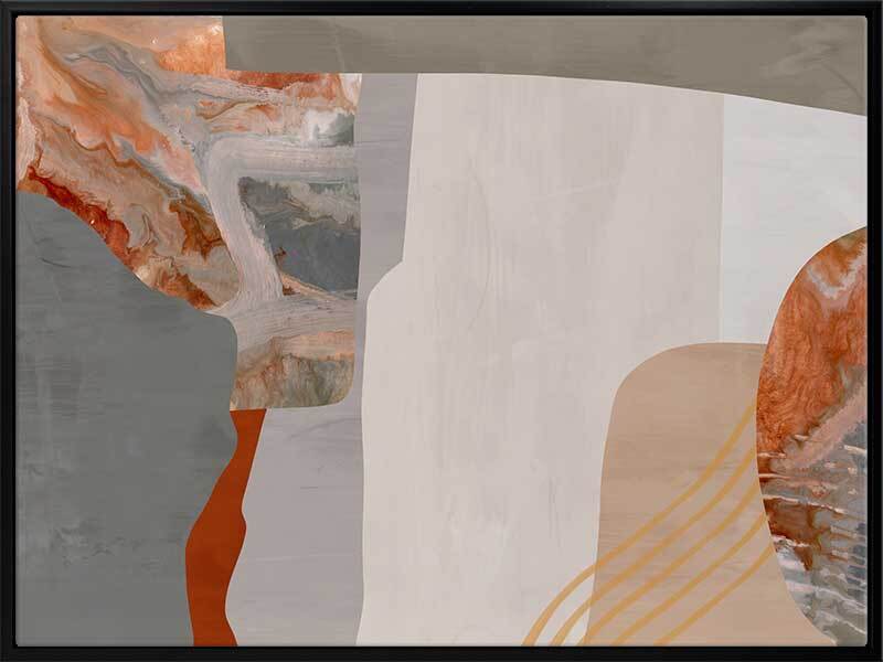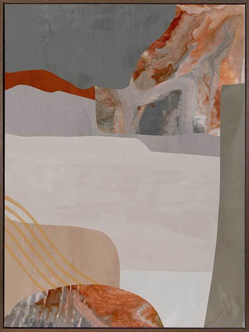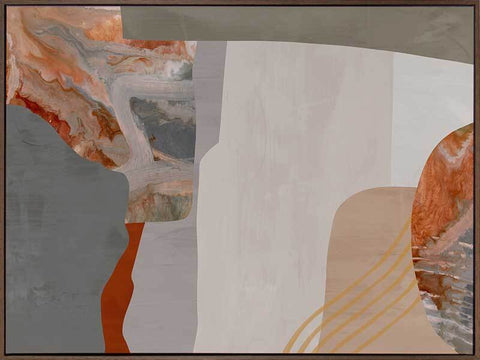 Mansion II Canvas Art Print: A sophisticated abstract artwork that overlays burnt orange, grey and cream shapes and textures. Pairs with Mansion I.
